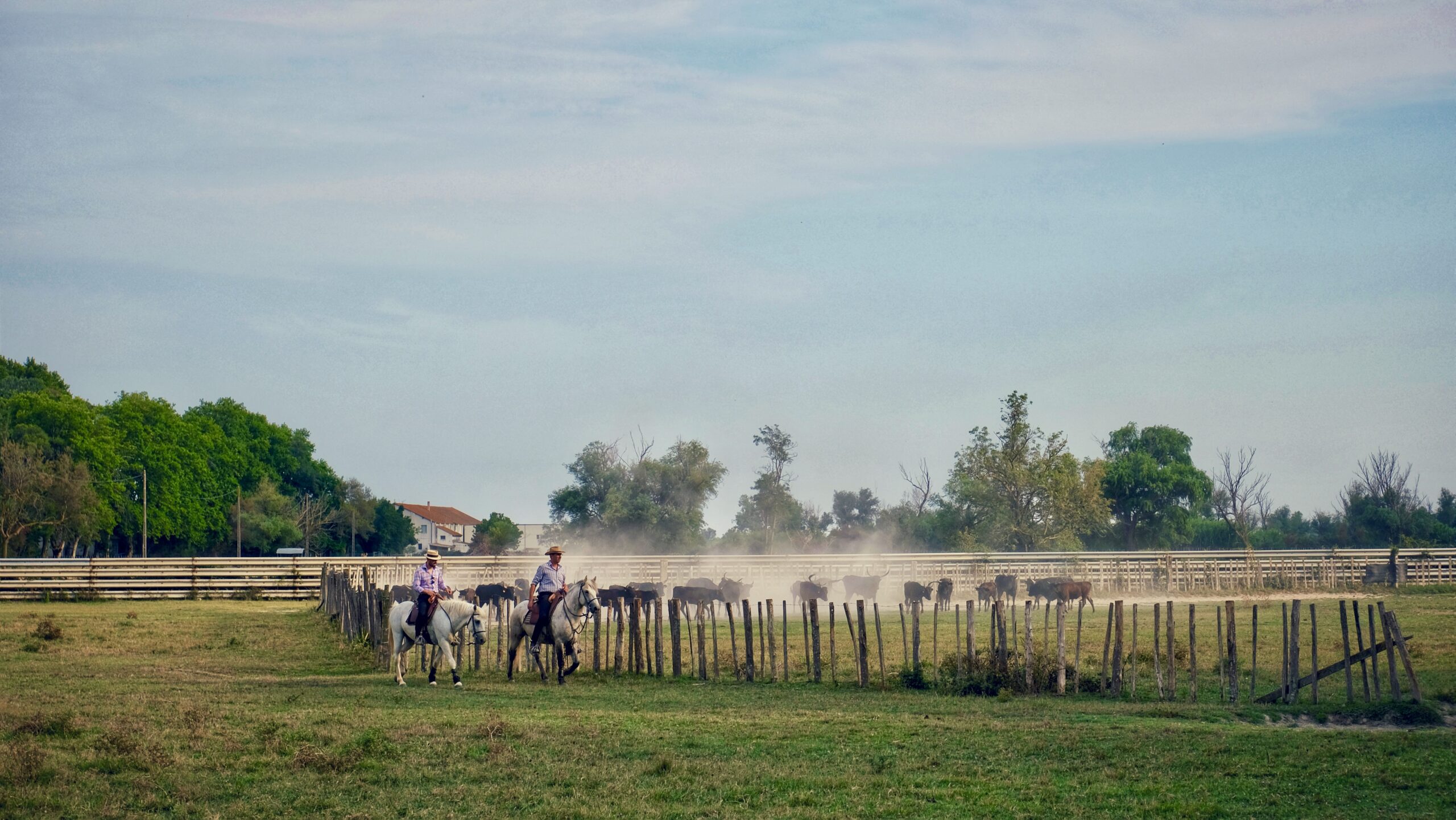 La Camargue, un territoire à la confluence du Gard et des Bouches du Rhône, du Languedoc et de la Provence, du Rhône et de la Méditerranée. Au sud d’Arles, dans le delta du Rhône la Camargue couvre un espace de 150 000 hectares entre ciel, terre et mer. Couverte d’étangs et de lagunes, c’est une terre d’élevage de chevaux et de taureaux qui y vivent en liberté au milieu des flamands roses et de centaines d’autres espèces animales.